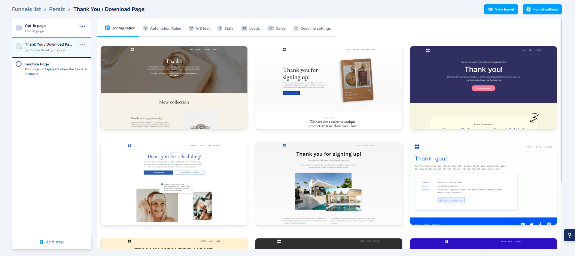 Depending on the funnel type you selected, Systeme.io may already include a thank-you page or allow you to add one manually.